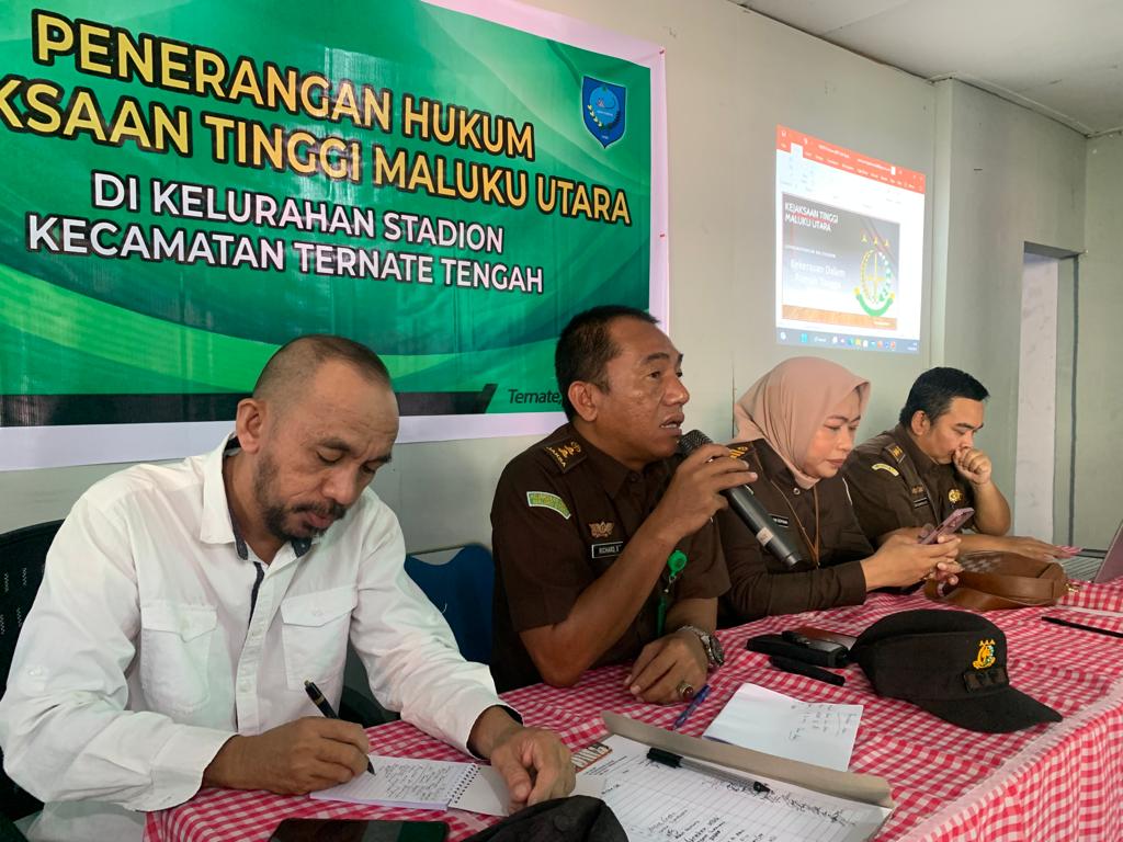 Rabu 17 Mei 2023 bidang Intelijen Kejati Malut telah melaksanakan Penerangan hukum di Kantor Lurah Stadion dengan materi, Mencegah terjadinya KDRT dan Penyelesaian perkara Pidum melalui Restoratif justice (RJ) yang dihadiri oleh ketua RW, ketua RT serta masyarakat di Kelurahan stadion.Kegiatan ini mendapat respon positif dari masyarakat yang ditandai dengan forum tanya jawab yang antusias.